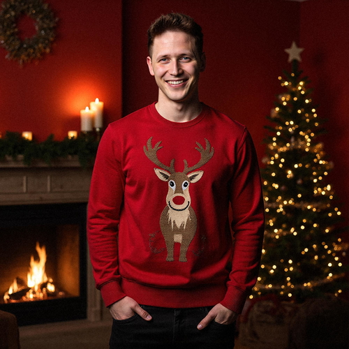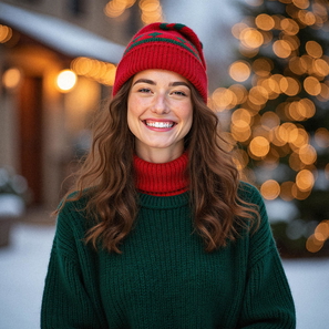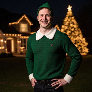 Professional AI-generated Christmas elf portraits. Green costumes, reindeer sweaters, and festive settings ready in minutes.