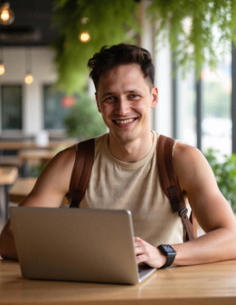 On Upwork, Fiverr, and other freelance platforms, your profile photo is your first impression. A polished laptop-at-café portrait signals professionalism and a modern working style — GoStudio generates it from any selfie.