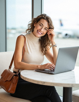 A digital nomad portrait shows you're professional and capable without the corporate office backdrop. GoStudio's laptop café settings work perfectly as a LinkedIn profile photo for freelancers, remote workers, and consultants.